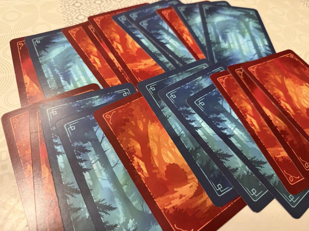 Amarok propose des illustrations très douces. Elles participent à l’identité du jeu sans forcément prendre le dessus sur la mécanique. Les cartes sont très lisibles, ce qui est important dans un jeu dans lequel l’on observe beaucoup ce que font les autres. On repère rapidement les symboles et les effets.