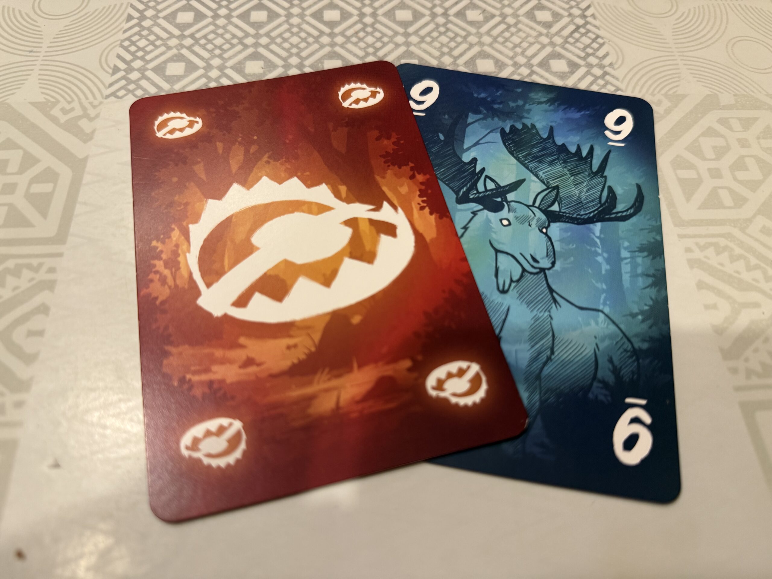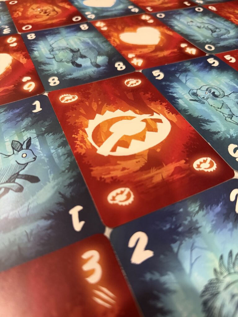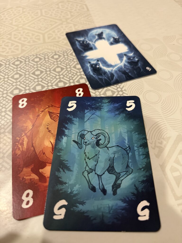 Une des idées les plus originales du jeu est que plus vous gagnez de manches, moins vous voyez de cartes. Chaque manche gagnée, c’est une carte retournée dans votre jeu pour les suivantes. Avec deux cartes en main, vous vous retrouvez vite à ne plus savoir ce que vous avez. Mais pas grave, car la partie se gagne en 3 manches. Ce petit système permet de rééquilibrer naturellement la partie et maintient la tension jusqu’au bout. Vers la fin de la partie, Amarok a des petits airs d’Hanabi, mais en compétitif.