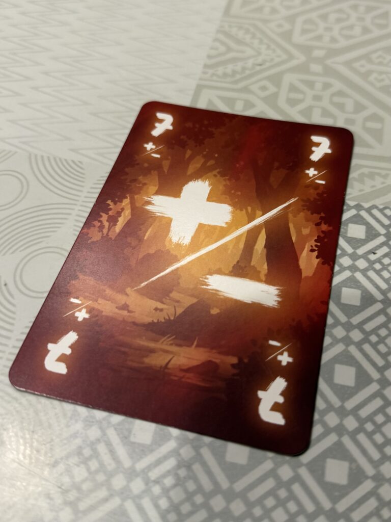 Le bluff est finalement assez léger. La vraie tension vient surtout de la lecture de jeu et des retournements possibles. Les cartes griffes ou + / − peuvent provoquer de réels changements de situation. Il nous est même arrivé d’avoir un retournement complet sur la toute dernière carte jouée.
