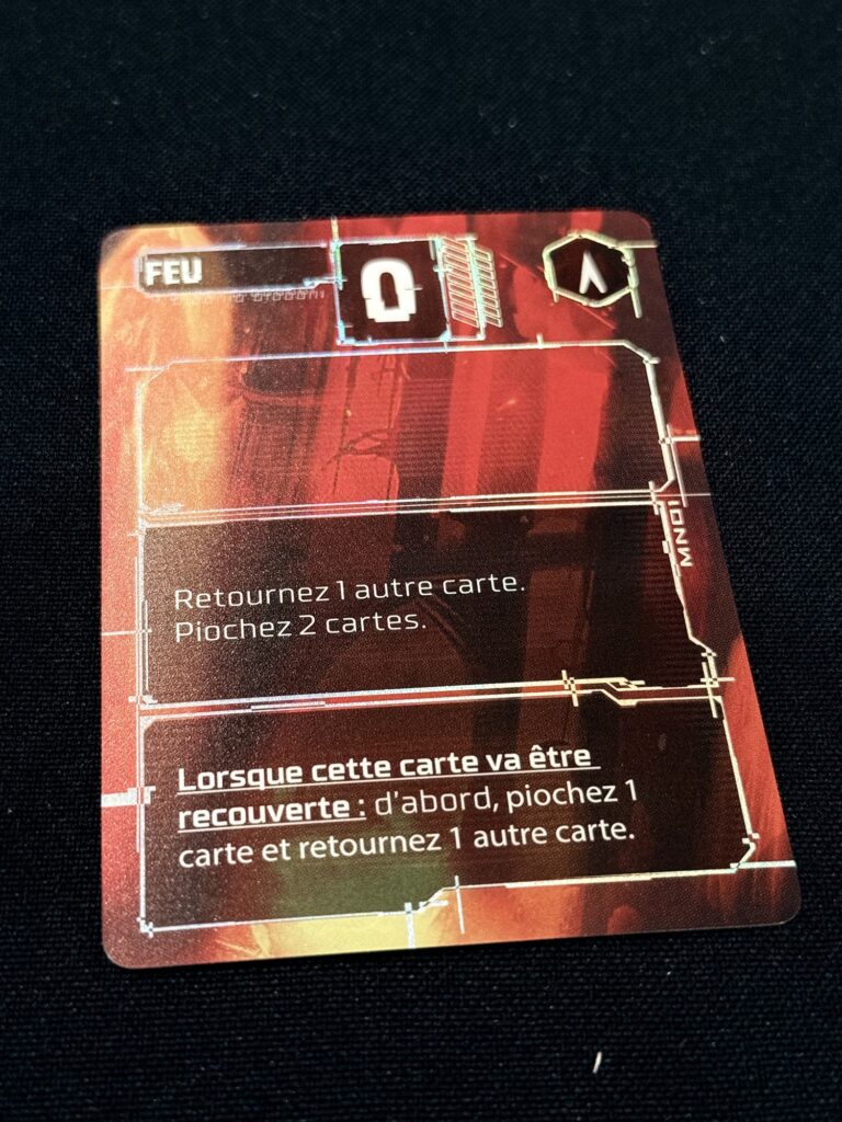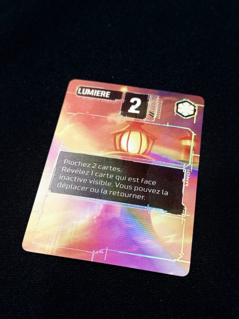 Les cartes possèdent plusieurs zones d’effets qui se déclenchent à différents moments. C’est là que le jeu peut surprendre au départ. Lors des premières parties, j’ai dû revenir plusieurs fois dans le livret pour bien comprendre à quel moment certains effets s’appliquaient.