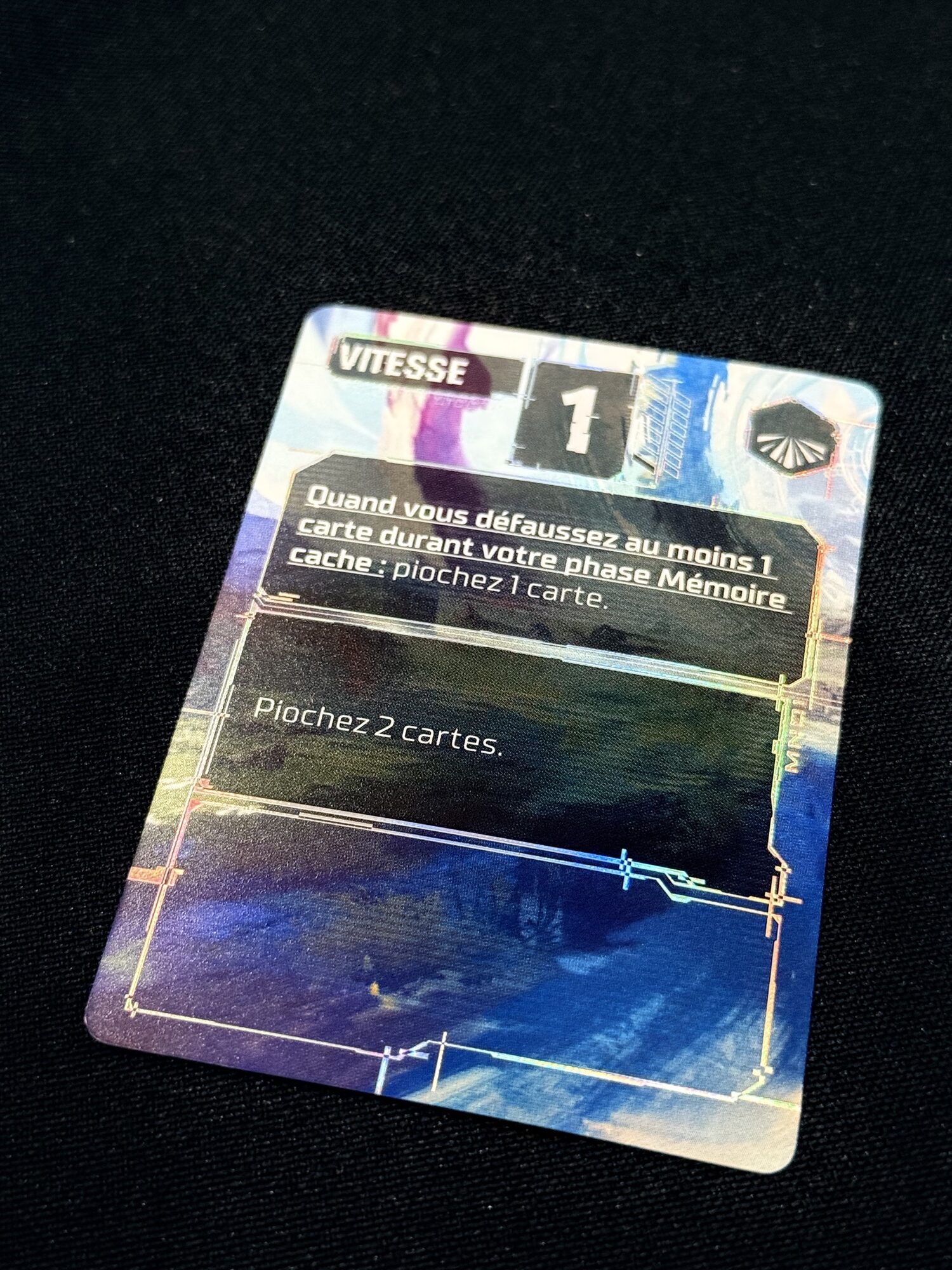 Chaque carte posée peut modifier l’équilibre d’un protocole, déclencher un effet inattendu ou ouvrir une opportunité pour l’adversaire. Très vite, la partie devient un jeu d’observation et d’anticipation. On surveille les lignes adverses, on essaie de deviner ce qui se prépare et on choisit soigneusement le moment où intervenir. Certaines cartes permettent d’accélérer un protocole vers sa compilation, d’autres viennent perturber le travail adverse, on peut piocher, défausser, retourner, déplacer, et encore plein de trucs en « er ».