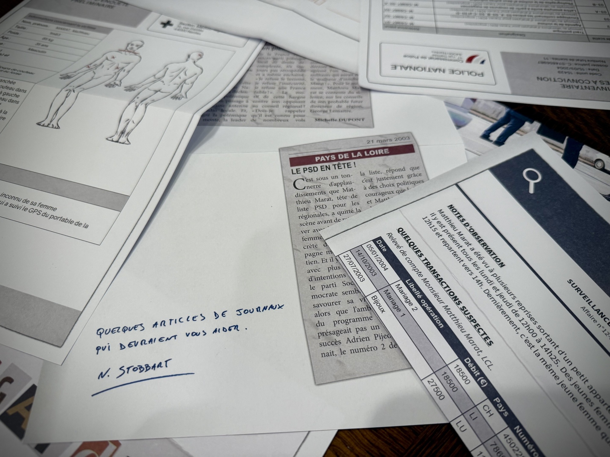 Et des photocopies de divers documents comme des rapports de police, factures et coupures de journaux.