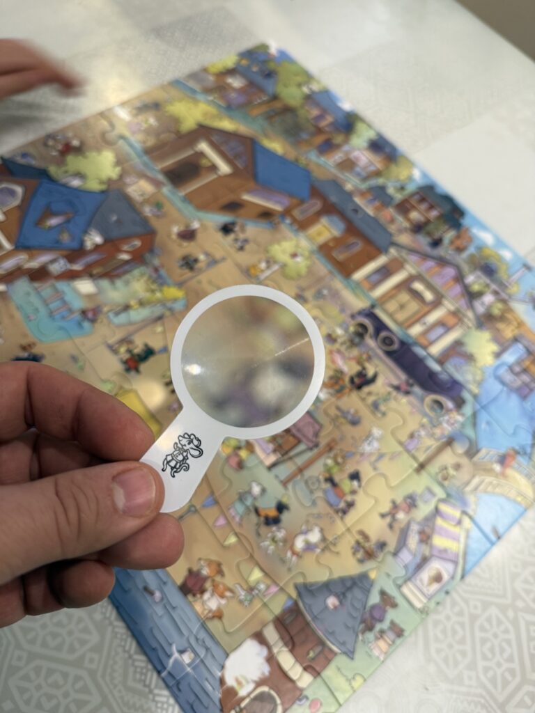 Les parties sont courtes et dynamiques, ce qui permet de garder l’attention des enfants du début à la fin. L’expérience alterne entre deux moments très différents : la construction du puzzle et la résolution de l’enquête. Ce rythme fonctionne très bien avec les enfants. Ils aiment construire l’image, puis se transformer en détectives pour analyser chaque détail. L’enthousiasme est habituellement au rendez-vous.